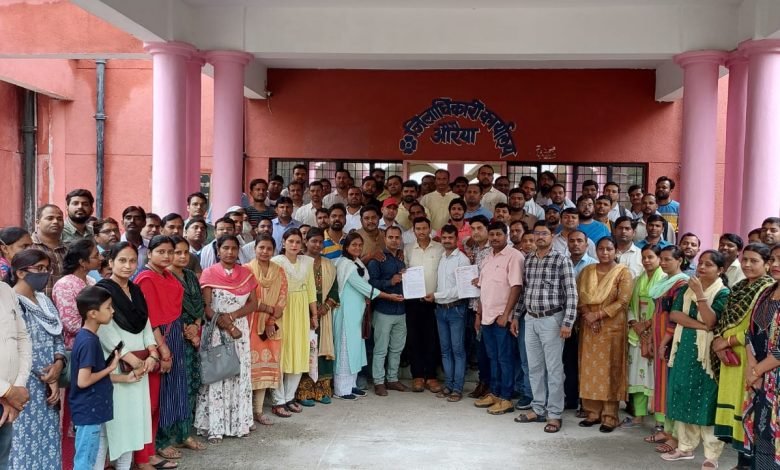 औरैया। प्रभारी प्रधानाध्यापकों का कार्य कर रहे शिक्षकों को प्रधानाध्यापक स्तर का वेतन दिए जाने, प्रोन्नति, लंबित एरियर व वेतन आदि शिक्षकों की तमाम समस्याओं को लेकर यूनाइटेड टीचर्स एसोसिएशन द्वारा प्रदेश नेतृत्व के आवाहन पर मुख्यमंत्री को ज्ञापन भेजा गया। शुक्रवार को यूटा जिलाध्यक्ष ओमजी पोरवाल, मण्डल अध्यक्ष नीरज राजपूत के निर्देश पर जिला मुख्यालय ककोर पहुंच कर बड़ी संख्या में शिक्षकों ने जिलाधिकारी कार्यालय में मुख्यमंत्री को संबोधित ज्ञापन दिया।