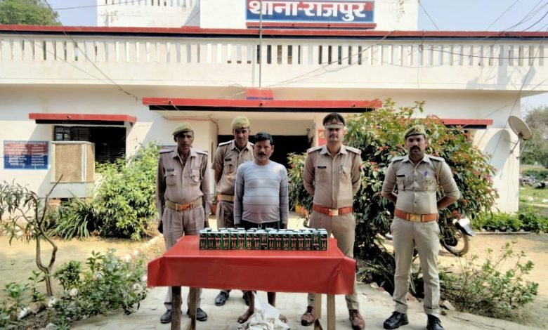 सिकंदराकानपुर देहात। अपर पुलिस अधीक्षक के मार्ग निर्देशन पर अपराध पर अंकुश लगाए जाने के मार्गदर्शन मे आज थाना राजपुर की पुलिस ने मुखबिर की सूचना पर 45 अवैध देसी शराब के क्वार्टर समेत एक व्यक्ति को गिरफ्तार कर जेल भेजा। प्राप्त खबरों के अनुसार थाना प्रभारी राजपुर अनुराग पांडे ने हमारे संवाददाता को बताया कि आज राजपुर थाने की पुलिस टीम ने सुबह 10 बजे के लगभग एक चेकिंग अभियान में थाना सिकंदरा की गांव गड़वारा निवासी राम सजीवन पुत्र रज्जन लाल की तलाशी लेने पर 45 अवैध देसी शराब के क्वार्टर बरामद किए जिस को गिरफ्तार कर जेल भेजा गया।