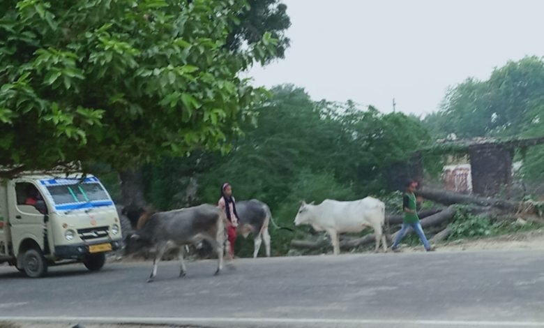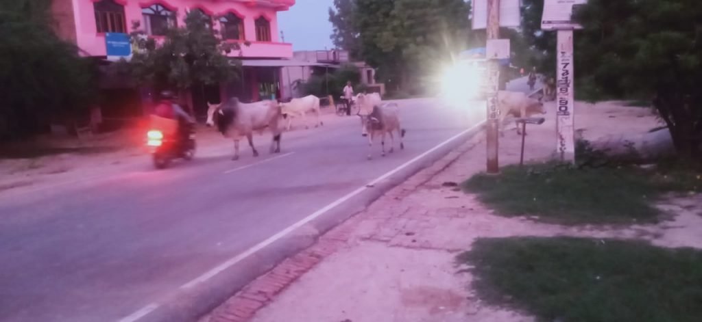 दिलीप नगर बेला रोड पर रहता है अन्ना पशुओं का आतंक, दुर्घटनाओं का शिकार होते राहगीर