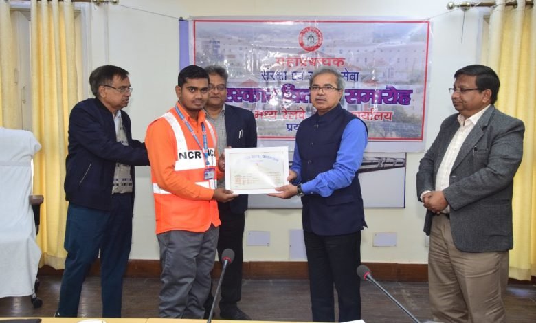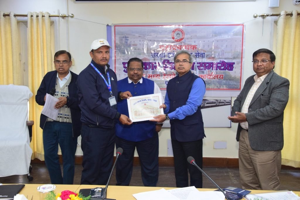 महाप्रबन्धक, उत्तर मध्य रेलवे, सतीश कुमार की अध्यक्षता में उत्तर मध्य रेलव मुख्यालय में संरक्षा/समयपालनता समीक्षा बैठक का आयोजन हुआ। बैठक के दौरान ही महाप्रबन्धक, उत्तर मध्य रेलवे, श्री सतीश कुमार ने प्रमुख मुख्य संरक्षा अधिकारी, श्री मनीष कुमार गुप्ता एवं उत्तर मध्य रेलवे के विभागाध्यक्षों की उपस्थिति में संरक्षा के प्रति किए गए उत्कृष्ट कार्यों के लिए झांसी, आगरा एवं प्रयागराज मण्डलों से चयनित 05 रेल कर्मचारियों को महाप्रबन्धक महोदय के द्वारा संरक्षा पुरस्कार प्रदान किए गए। पुरस्कृत कर्मचारियों में श्री एस. पी. पाल, लोको पायलट/प्रयागराज/प्रयागराज मण्डल, श्री पी. मण्डल, को-लोको पायलट/प्रयागराज/प्रयागराज मण्डल, श्री लकी कुमार, लोको पायलट/गुड्स, झॉसी/झॉसी मण्डल, श्री शुभम यादव, ट्रैक मेन्टेनर/ मानिकपुर/प्रयागराज मण्डल एवं श्री मोहन लाल मीना, पद ट्रैक मेन्टेनर (चाबीवाला)/शोलाका/आगरा मण्डल शामिल हैं।