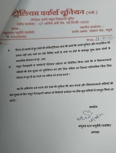 ठेकेदार द्वारा मासिक पारिश्रमिक का 60 फीसदी बापस करने के लिए मजबूर करने के क्रम में 5 संविदा श्रमिकों के साथ मारपीट कर गेट पास छीनने के विरोध में रिफाइनरी के इलेक्ट्रिकल विभाग के संविदा श्रमिक एक दिवसीय सामूहिक अवकाश पर रहे । व्यापक स्तर पर वेतन चोरी के मुद्दे पर पेट्रोलियम वर्कर्स यूनियन के प्रतिनिधि मंडल ने आज जिलाधिकारी श्री पुलकित खरे से भेंट की और ज्ञापन सौंपकर 2 दशकों से जारी वेतन चोरी के संबंध में ठेकेदारों के विरुद्ध प्रार्थमिकी दर्ज कराने, ठेकों की मजिस्ट्रेट जांच कराने और वेतन चोरी को प्रकाश में लाने वाले मजदूरों की सेवा सुरक्षा की मांग की ।
