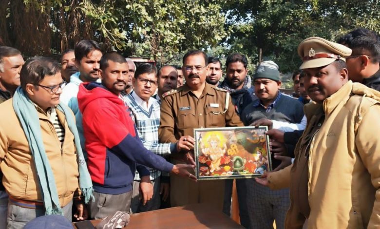 व्यापारियों ने प्रतीक चिन्ह भेंट कर थाना प्रभारी का किया स्वागत