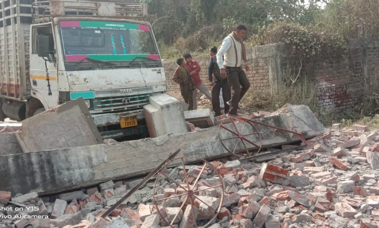 डीसीएम की टक्कर से धराशायी हुआ स्वतंत्रता सेनानी द्वार