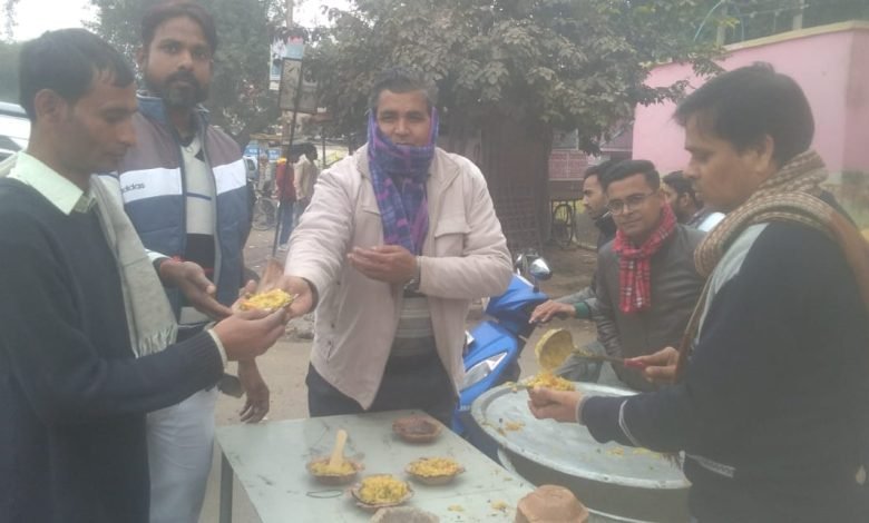 जिले में मकर संक्रांति के अवसर पर जगह-जगह बांटी गई खिचड़ी व चाय