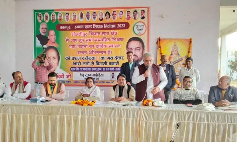 भारतीय जनता पार्टी कानपुर देहात में उत्तर प्रदेश सरकार में माध्यमिक शिक्षा राज्य मंत्री (स्वतंत्र प्रभार) राज्यमंत्री श्रीमती गुलाबो देवी ने शिक्षक एमएलसी प्रत्याशी स्नातक एमएलसी प्रत्याशी वेणु रंजन भदोरिया व अरुण पाठक के लिए शिक्षक एवं स्नातक मतदाताओं के बीच जाकर भोगनीपुर के इंद्रप्रस्थ गार्डन पुखरायां एवं डेरापुर मे पुष्पा गेस्ट हाउस में बैठक कर मतदाताओं से दोनों प्रत्याशियों को भारी बहुमत से जिताने की अपील की कैबिनेट मंत्री राकेश सचान राज्यमंत्री अजीत पाल जिला अध्यक्ष व एमएलसी अविनाश सिंह चौहान ने पुष्पगुच्छ देकर अभिवादन किया स्वतंत्र प्रभार मंत्री गुलाबो देवी ने स्नातक एवं शिक्षकों को संबोधित करते हुए कहा भारतीय जनता पार्टी ने सभी क्षेत्रों से चुनाव लड़ने का फैसला किया पहले शिक्षक क्षेत्र में प्रत्याशी को चुनाव में पूरी तरह से भाग नहीं लेते थे लेकिन भारतीय जनता पार्टी ने इस क्षेत्र का विकास करने के लिए बढ़ावा देने के लिए पूरे उत्तर प्रदेश से प्रत्याशी उतारने का काम किया है मोदी एवं योगी डबल इंजन सरकार ने जिस प्रकार से उत्तर प्रदेश का विकास कार्य किया है इसका कारण है उत्तर प्रदेश में भारी इन्वेस्टमेंट आ रहा है नए रोजगार के अवसर खुल रहे हैं इससे निश्चित ही बेरोजगारी की समस्या का समाधान होगा योगी सरकार ने प्राइवेट क्षेत्र में इन्वेस्टमेंट के क्षेत्र में मील का पत्थर साबित किया है लायन आर्डर ग्रामों का विकास घर घर पानी की उपलब्धता गुड गवर्नेंस उत्तर प्रदेश में एक्सप्रेसवे एवं शिक्षा के क्षेत्र में भारतीय जनता पार्टी युद्ध स्तर पर काम कर रही है हमारा यह बराबर प्रयास बना रहेगा कि जिस स्तर पर प्राथमिक शिक्षक की समस्या है, उसका निदान उसी स्तर से किया जाएगा। ताकि शिक्षक खुले मन से क्षेत्र में बच्चों के बीच शिक्षण का कार्य सुचारू रूप से जारी रख सकें। उन्होंने कहा कि वे शिक्षक रहे हैं और शिक्षकों की मनो स्थिति को बखूबी समझते भी हैं कैबिनेट मंत्री राकेश सचान ने भाजपा प्रत्याशी अरुण पाठक एवं वेणु रंजन भदोरिया को भारी अंतर से जिताने का आवाहन किया राज्यमंत्री अजीत पाल एमएलसी अविनाश सिंह चौहान ने शिक्षकों एवं स्नातकों को भारी संख्या में वोट डालकर भाजपा प्रत्याशी को विजई बनाने का काम करें जो जीत का उत्तर प्रदेश में का एक रिकॉर्ड हो इससे निश्चित ही इस क्षेत्र में भाजपा विकास कर सके इस मौके पर अंशु त्रिपाठी महेंद्र कटियार डॉ विवेक द्विवेदी स्वतंत्र पासवान सौरभ मिश्रा सोनू मिश्रा मुकुल पाण्डेय अमित राजपूत बीटू द्विवेदी अतुल अग्निहोत्री मुनेश शुक्ला अखिलेश सिंह विकास मिश्रा मीडिया प्रभारी आदि लोग उपस्थित रहे