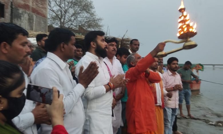 जिला पंचायत अध्यक्ष प्रतिनिधि शशांक शेखर सिंह सनी सिद्ध पीठ मां चंद्रिका व अम्बिका धाम में गंगा मां की आरती करते हुए