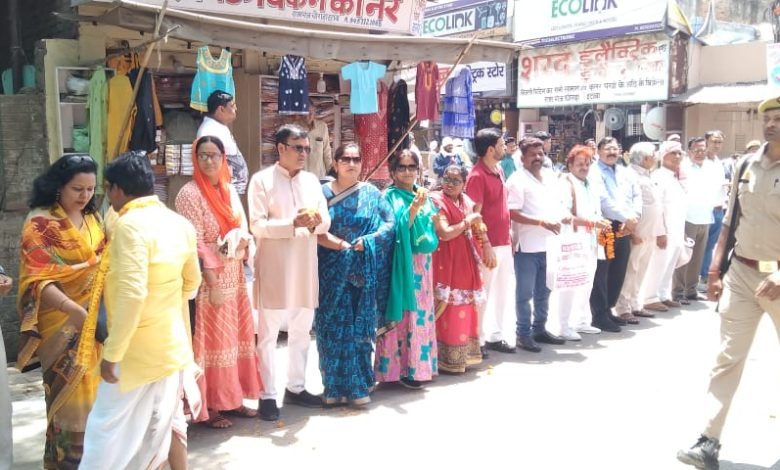 उत्तर प्रदेश उद्योग व्यापार प्रतिनिधि मंडल ने परशुराम शोभा यात्रा पर पुष्प वर्षा कर किया अभिनंदन
