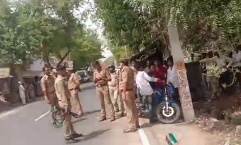 मृतक दीपू के परिजन व आक्रोशित ग्रामीणों ने शव को कल्याणपुर-बिठूर मार्ग पर रखकर जाम लगा दिया है