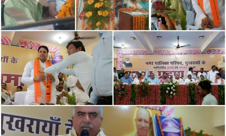 नगर पालिका परिषद के बैकंट हाल में शपथ समारोह में भारतीय जनता पार्टी के तमाम कार्यकर्ता नगर वासी और पुखरायॉ कानपुर देहात जिले के विशिष्ट अतिथि केनद़ सरकार के राज्य मंत्री भानू प़साद वमां उत्तर प्रदेश सरकार के कैबिनेट मंत्री राकेश सचान एम एल सी जिलाअध्यक्ष अविनाश सिंह चौहान पूवं जिलाध्यक्ष राजेश तिवारी श्याम सिंह सिसोदिया राहुल देव अग्निहोत्री रेलवे के सदस्य योगेन्द्र दिवेदी रामू पूवं विधायक विनोद कटियार अशोक राजपूत जिला प़भारी मंडल अध्यक्ष प़मोद त्रिपाठी देवेश तिवारी जीतू शमां रेणुका सचान डिम्पल सचान व भाजपा के समस्त कायंकता व नगरपालिका अधिशाषी अधिकारी अजय कुमार राय अधिशाषी अभियंता कैलाश चन्द्र अतुल पाण्डेय व नगरपालिका के समस्त कमंचारी शामिल हुए ।