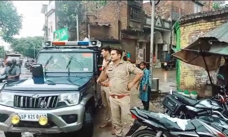 बारिश के बीच पुलिस ने जाकर जनपद के लोगों से विद्युत पोल से दूर रहने की अपील