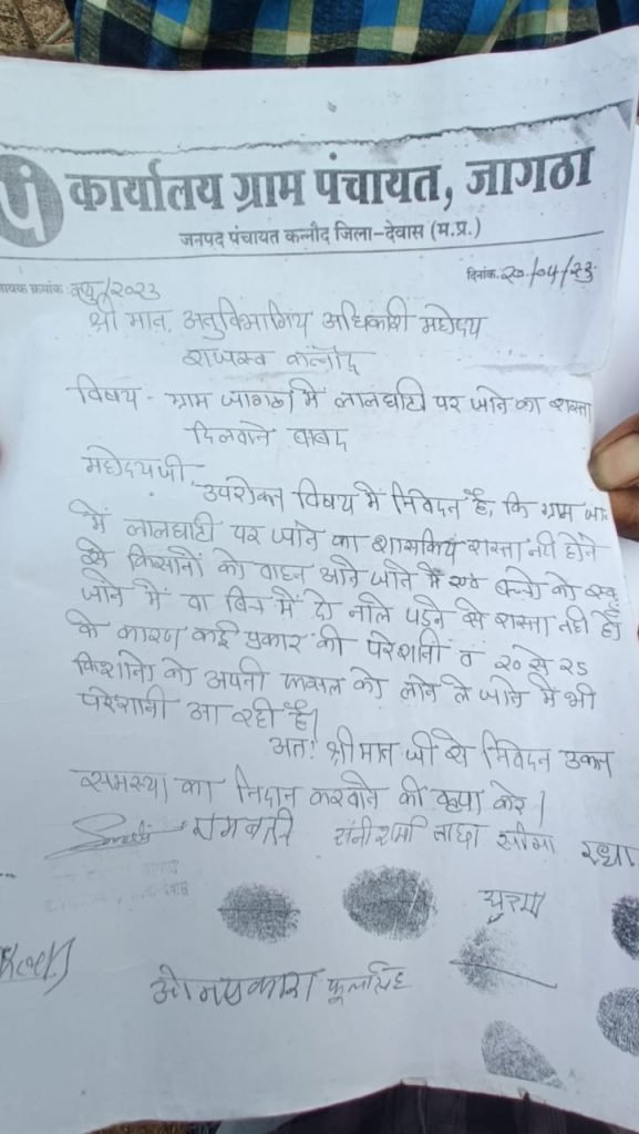 अपेक्षित कार्रवाई नहीं हुई करीब 2 माह पहले सरपंच ने रास्ते के लिए आवेदन दिया था जिसमें तहसीलदार को कार्रवाई के लिए निर्देशित किया था लेकिन आप के माध्यम से पता चला अपेक्षित कार्रवाई नहीं हुई है तहसीलदार को भेज कर उचित कार्रवाई कराई। जाएगी