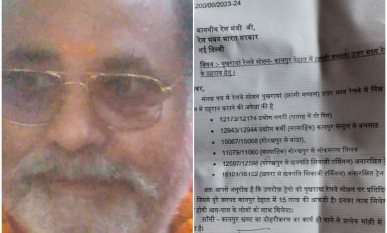 पुखरायॉ मे ट़ेनो के ठहराव को लेकर अकबरपुर सांसद के द्वारा की गई मॉग