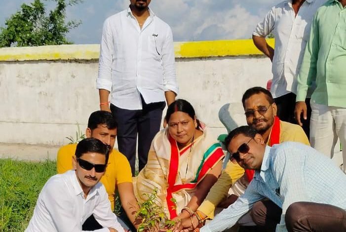 भाजपा महिला मोर्चा जिलाध्यक्ष ने बील्हापुर में किया वृक्षारोपण
