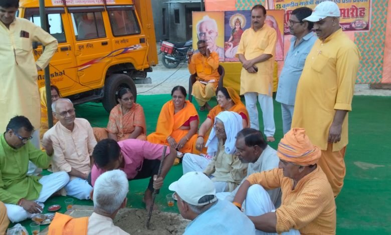 गायत्री परिवार द्वारा कस्बे के पुराने बरधाई बाजार में किया गया भूमि पूजन