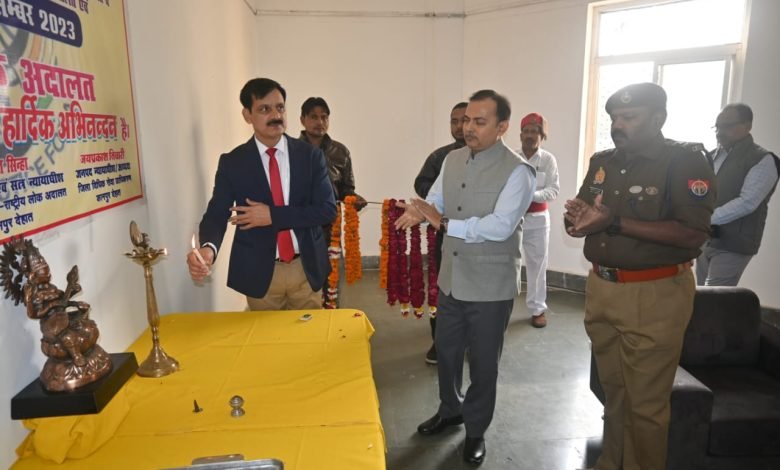 राष्ट्रीय विधिक सेवा प्राधिकरण, नई दिल्ली तथा उ0प्र0 राज्य विधिक सेवा प्राधिकरण, लखनऊ द्वारा निर्गत दिशा-निर्देशों के अनुक्रम में कोविड-19 प्रोटोकाल के नियमों का पालन करते हुए आज दिनांक 09.12.2023 को माननीय जनपद न्यायाधीश/अध्यक्ष, जिला विधिक सेवा प्राधिकरण, श्री जय प्रकाश तिवारी एवं श्री हिमांशु कुमार सिंह अपर जिला जज/नामित सचिव जिला विधिक सेवा प्राधिकरण, कानपुर देहात द्वारा जनपद न्यायालय कानपुर देहात के पोर्टिगो में माँ सरस्वती जी की मूर्ति पर माल्यार्पण व दीप-प्रज्वलन कर राष्ट्रीय लोक अदालत एवं आर्बिट्रेशन की विशेष लोक अदालत का शुभारम्भ किया गया, जिसमें श्री चन्द्र शेखर II – प्रथम अपर जिला जज एवं श्री रजत सिन्हा- नोडल अधिकारी लोक अदालत सहित समस्त न्यायिक अधिकारीगण एवं कर्मचारीगण उपस्थित रहे। कार्यक्रम का संचालन श्री हिमांशु कुमार सिंह, अपर जिला जज/नामित सचिव, जिला विधिक सेवा प्राधिकरण, कानपुर देहात द्वारा किया गया। कार्यक्रम में माननीय जनपद न्यायाधीश/अध्यक्ष, जिला विधिक सेवा प्राधिकरण, द्वारा अधिक से अधिक वादों के निस्तारण हेतु दिशा-निर्देश दिये गये एवं लोक अदालत को सफल बनाने का आवाहन किया गया।