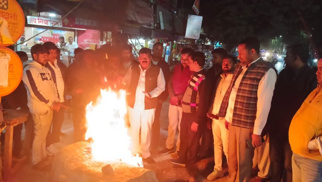 नगर के प्रमुख स्थानों पर लगवाए गए अलाव