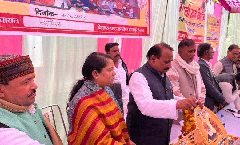 जनपद कानपुर देहात मे चल रही संकल्प यात्रा मे मंगलवार को भोगनीपुर तहसील क्षेत्र के ग़ाम बहेरी माह में कायं क़म का आयोजन हुआ