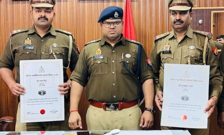 पुलिस अधीक्षक अमित कुमार आनंद द्वारा 02 पुलिसकर्मियों को उत्कृष्ट कार्य हेतु प्रशंसा चिन्ह, प्रशस्ति पत्र देकर किया गया सम्मानित