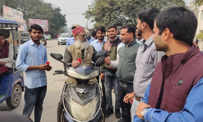 चालकों को गुलाब देकर हेलमेट पहनने,सीटबैल्ट लगाने को किया जागरूक