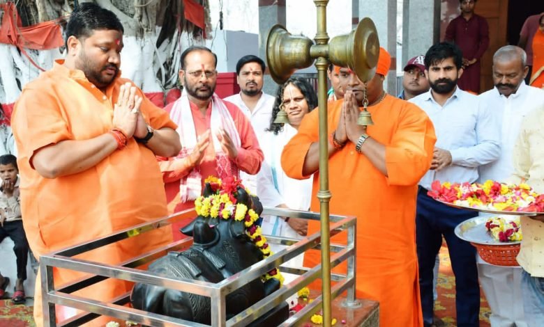 तुलसीपुर। जनकपुर स्थित श्री मुक्तेश्वर नाथ महादेव मंदिर में गत वर्षो की भांति इस नववर्ष एवं चैत्र नवरात्रि के पावन अवसर पर श्री राम कथा का आयोजन चेयरमैन डॉ.धीरेन्द्र प्रताप सिंह धीरू द्वारा किया जा रहा है। इसी क्रम में आज प्रथम दिवस परम पूज्य महंत मिथलेश नाथ योगी द्वारा विधि विधान से पूजन अर्चन कर हजारों माताओं बहनों द्वारा कलश यात्रा निकाली गई। जिसका नेतृत्व युवा संत सर्वेश जी महराज ने किया। 09 दिनों तक सायं छ बजे से रात्रि दस बजे तक श्रीराम कथा उसके बाद भंडारे का आयोज किया गया है।