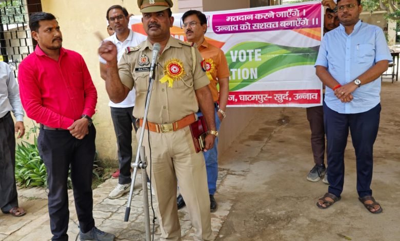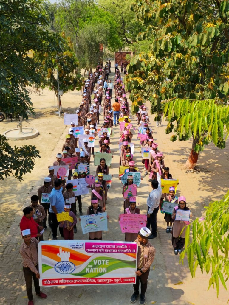 उन्नाव तहसील बीघापुर स्वीप योजना के अंतर्गत क्षेत्र के पतिराजा महिपाल इण्टर कॉलेज, घाटमपुर खुर्द में मतदाता जागरूकता अभियान का आयोजन किया गया। जिसमें विद्यालय के छात्र छात्राओं ने मतदाताओं को जागरूक करने के लिए रैली निकाली। वहीं कुछ छात्रों ने पतंगबाजी एवं छात्राओं ने मेहंदी प्रतियोगिता के माध्यम से मतदाताओं को जागरूक करने का काम किया। कार्यक्रम में थानाध्यक्ष बीघापुर राजपाल ने छात्रों को संबोधित करते हुए कहा कि आप अपने आस पास के लोगों को मतदान करने के लिए प्रेरित करें। प्रत्येक छात्र कम से कम 15 लोगों को मतदान करने के लिए जागरूक करेंगे। पति राजा महिपाल इंटर कॉलेज के प्रबंध निदेशक अभय सिंह ने छात्र-छात्राओं को मतदाताओं को जागरूक कराने की अपील की स्वीप कार्यक्रम के नोडल प्रभारी दिलीप भदौरिया, निर्भय सिंह “लाला”, बृजेश सिंह, पवन तिवारी, अंकित पाण्डेय, अयूब, उमेश पाण्डेय, विवेक श्रीवास्तव, रवि पाण्डेय, अरुण कुमार, श्याम सिंह सहित क्षेत्र के विभिन्न अभिभावकों ने कार्यक्रम में भाग लिया।