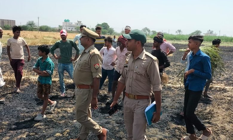 आग लगने से आधा दर्जन किसानों की 11 बीघे गेहूं की फसल हुई खाक