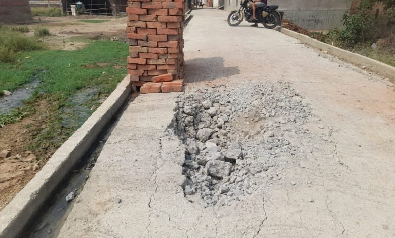 दो-दो फीट हुए गहरे गड्ढे, दे रहे दुर्घटनाओं को दावत,निर्माण सामग्री पर उठे सवाल
