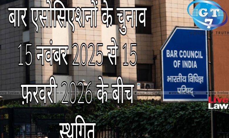 बार एसोसिएशनों के चुनाव 15 नवंबर 2025 से 15 फ़रवरी 2026 के बीच स्थगित करने का निर्देश BCI