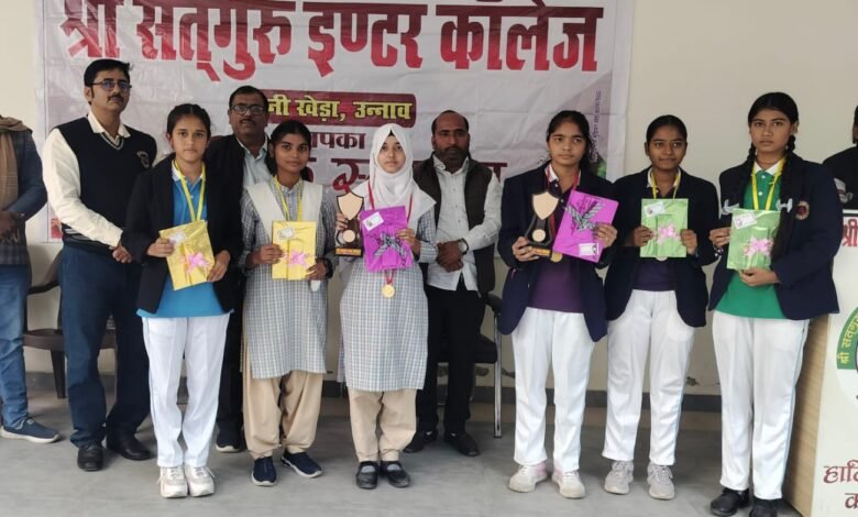 उन्नाव तहसील बीघापुर थाना बारा सगवर क्षेत्र के ग्राम धानी खेड़ा के श्री सतगुरु इंटर कॉलेज धानी खेडा उन्नाव में बाल दिवस के उपलक्ष्य में 14 सितंबर 2025 को आयोजित की गई हिंदी निबंध प्रतियोगिता में प्रथम द्वितीय एवं तृतीय स्थान प्राप्त करने वाले प्रतिभागियों को विद्यालय के प्रबंधक श्री राहुल सिंह जी द्वारा पारितोषिक एवं मेडल देकर सम्मानित किया गया निबंध प्रतियोगिता में कक्षा 9 व 10 में प्रथम स्थान गाँसियाँ D/O जाहिद हुसैन, द्वितीय स्थान आंचल D/O राकेश चौरसिया, तृतीय स्थान शिवानी गौतम D/O सुनील कुमार कक्षा 11 व 12 में प्रथम स्थान आख्या सिंह D/O महेश, द्वितीय स्थान अंशिका सिंह D/O रामेंद्र सिंह, तृतीय स्थान प्रतीक्षा पटेल D/O वीरेंद्र सिंह ने प्राप्त किया। बाल दिवस के उपलक्ष में विद्यालय के छात्र-छात्राओं द्वारा विभिन्न सांस्कृतिक कार्यक्रम प्रस्तुत किए गए। कार्यक्रम में विद्यालय के प्रधानाचार्य एवं समस्त अध्यापक उपस्थित रहे।