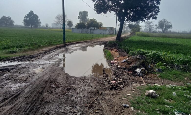 नौग़वाँ रोड से अमरपुर सैफई तक जाने बाला संपर्क मार्ग 5 कि मीटर तक बुरी तरह क्षतिग्रस्त।